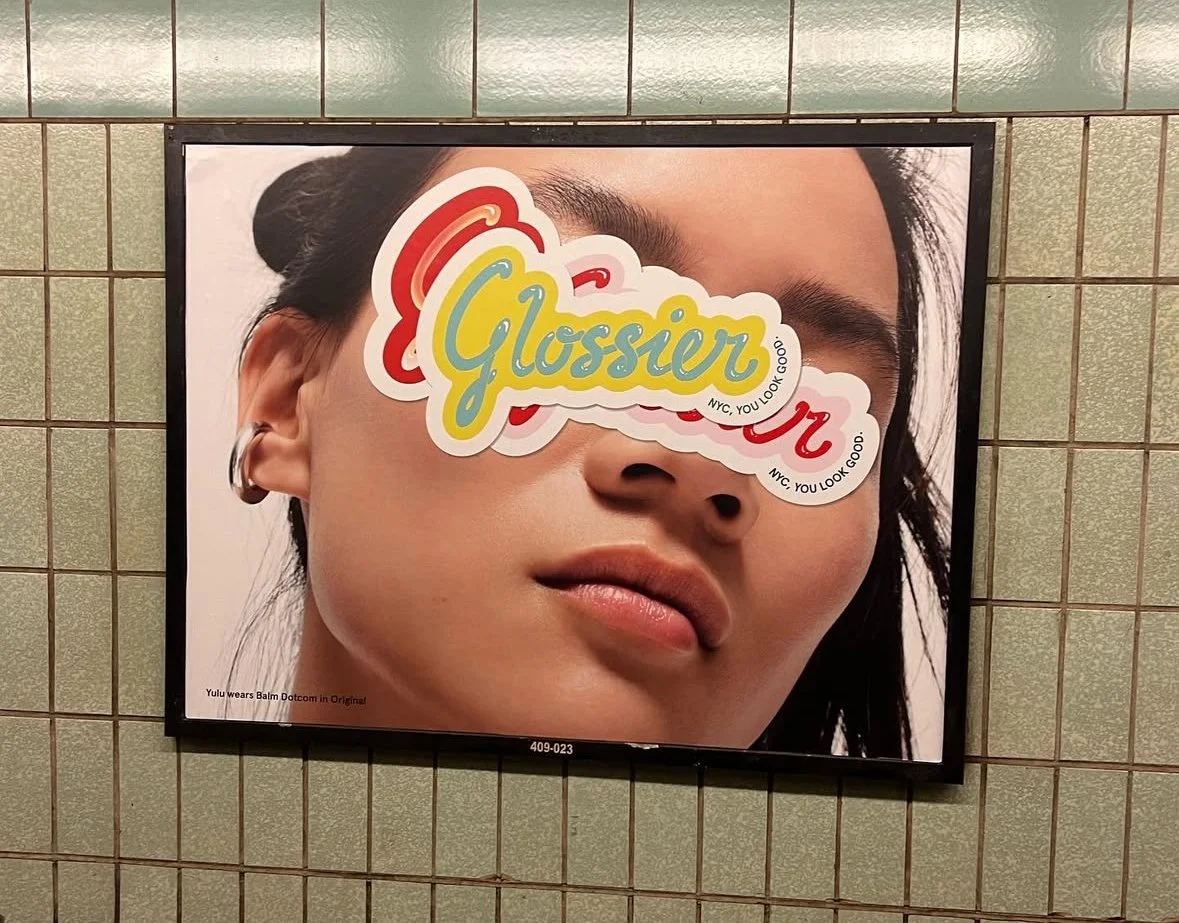 This campaign supported the opening of the new SoHo flagship store. It included a subway station takeover and a variety of digital, print and experiential placements throughout the city. We were inspired by the way people interact with advertising and storefronts in public spaces. In the same way street artists seek to make their mark, we took over our home turf the Glossier way. In our Spring St. subway station takeover, we will playfully cover our own placements and walls with jumbo branded stickers and tape, including a custom MTA card.
